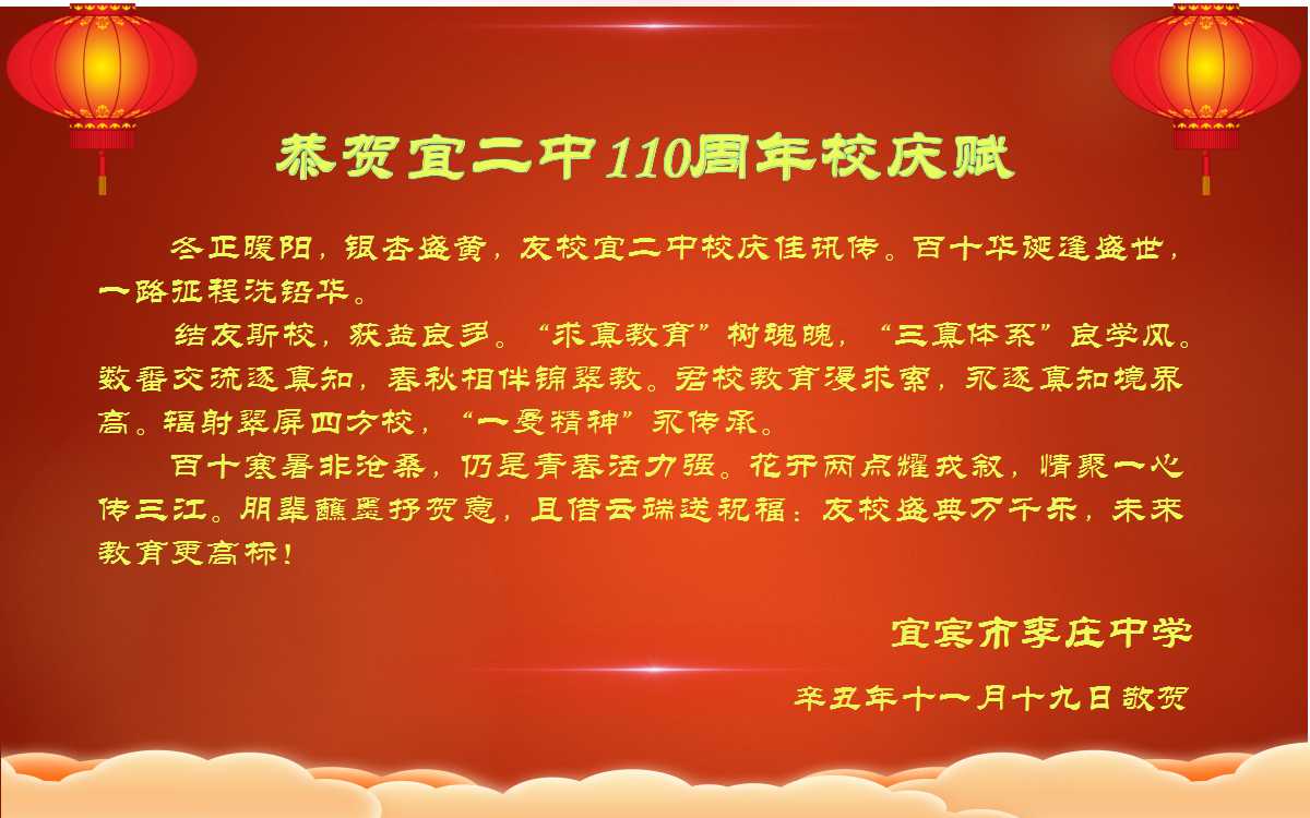 李庄中学恭贺宜二中110周年庆赋
